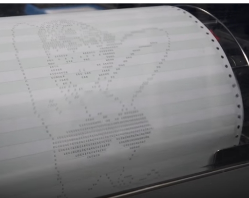 Eines Tages wurde meine Konzentration durch ungewohntes Gelächter aus dem Maschinenraum gestört. An den lauten Lärm der Peripheriegeräte wie Karten-Sortierer, -Stanzer und Kettendrucker hatte ich mich unterdessen gewöhnt, aber so lautes Lachen kannte ich noch nicht. Ich war gwundrig und ging in den Maschinenraum. Normalerweise waren jeweils nur 2 Operators in dem grossen Raum. Diesmal sah ich aber ein Dutzend Männer dicht gedrängt um den Drucker stehen. Da waren noch unsere 2 Computer-Techniker, der System-Analyst und meine beiden Programmierkollegen sowie von der Schreibmaschinenabteilung die 3 Verkäufer und die beiden Schreibmaschinen-Mechaniker. Sie alle starrten auf den Ausdruck der mit grosser Geschwindigkeit auf dem A3-quer Endlospapier ausgespuckt wurde. Das muss ja etwas ganz Interessantes sein, und ich wollte das auch sehen. Ein Operator drängte mich aber zurück und sagte, dass das gar nichts für mich wäre. Dennoch sah ich einige Stellen auf dem Papier. Durch die ausgeklügelte Anordnung von Buchstaben und Zeichen konnte man mit dem Kettendrucker tolle Bilder erstellen. Und hier erschien die Darstellung einer hübschen Frau mit gewelltem Haar und einer sexy Figur unter dem schönen Kleid. Das war auf den ersten Seiten zu sehen. Aber es folgten weitere Blätter und die Frau war nur noch mit BH und Unterhöschen bekleidet.