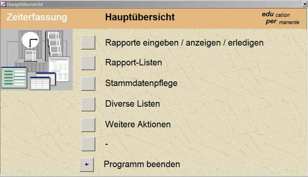 Ich erstellte z.B. Arbeitszeitkontrolle für eine international tätige Firma, Lagerverwaltung einer Firma für Unterlagsböden, Hotel-Informations-System für ein Reisebüro und anderes mehr.